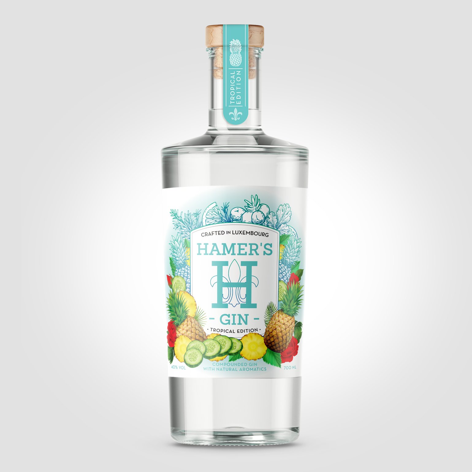 A tropical combination of noble botanicals, refreshing cucumber & the taste of fruity pineapple, followed by a floral note of rose, makes this HAMER'S GIN a very special one.